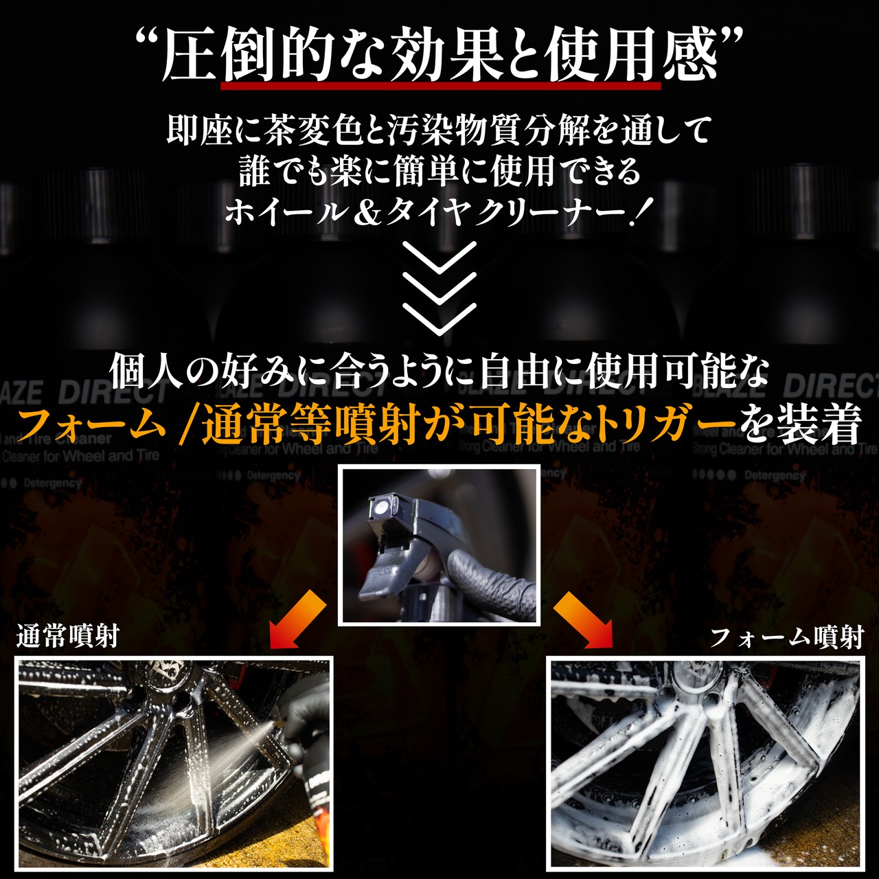 アルカリ性の強力タイヤ&ホイールクリーナー(希釈不要ストレートタイプ)