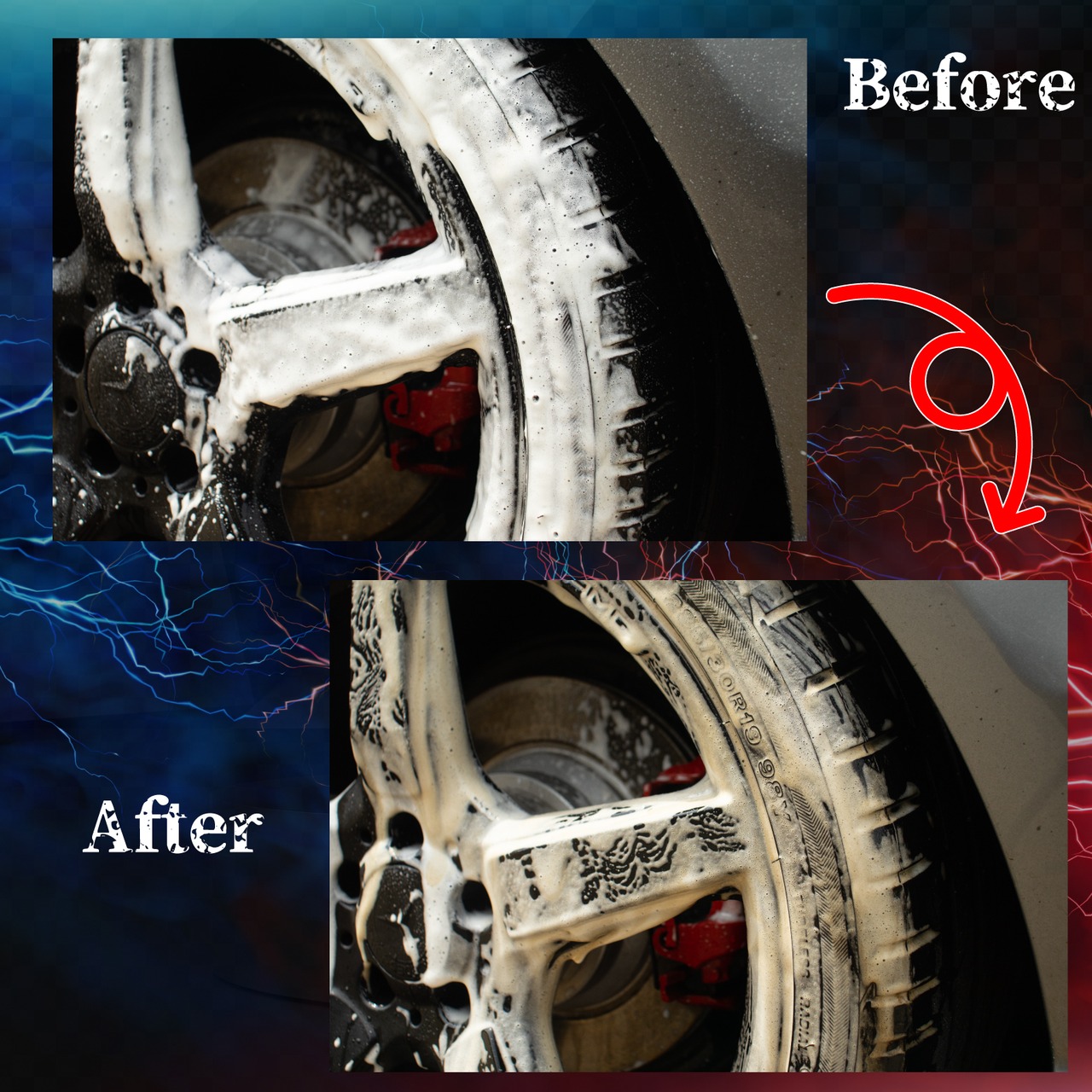 汚れの分解作用が非常に高いアルカリタイプで、ホイールの日常洗浄から固着してしまった汚れや水垢汚れの除去、古くなったコーティング層の除去、タイヤの茶色い汚れの除去などタイヤ&ホイール汚れに幅広くご使用頂けます