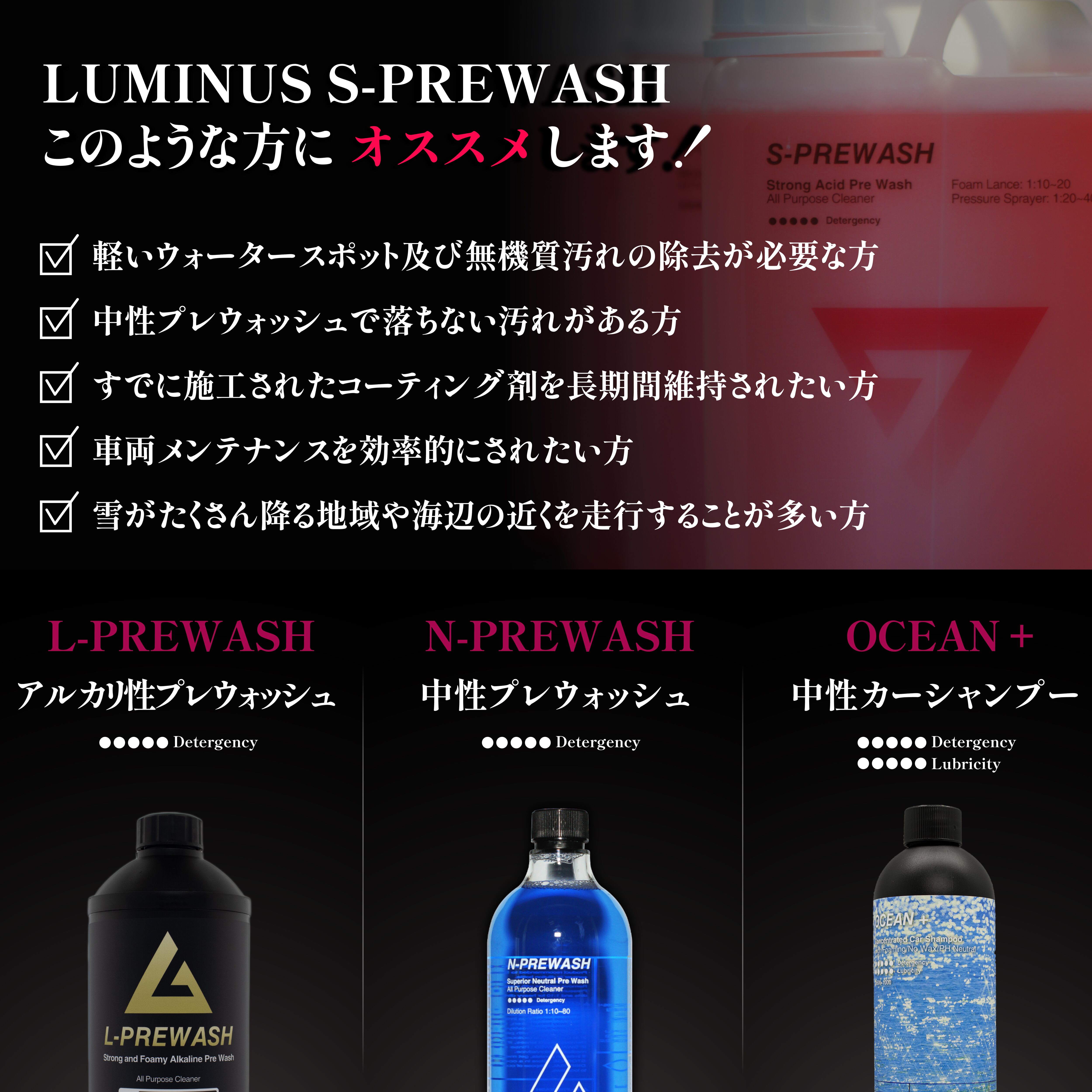アップデート【4ℓ】S-PREWASH 4L 酸性スノーフォーム プレウォッシュ LUMINUS