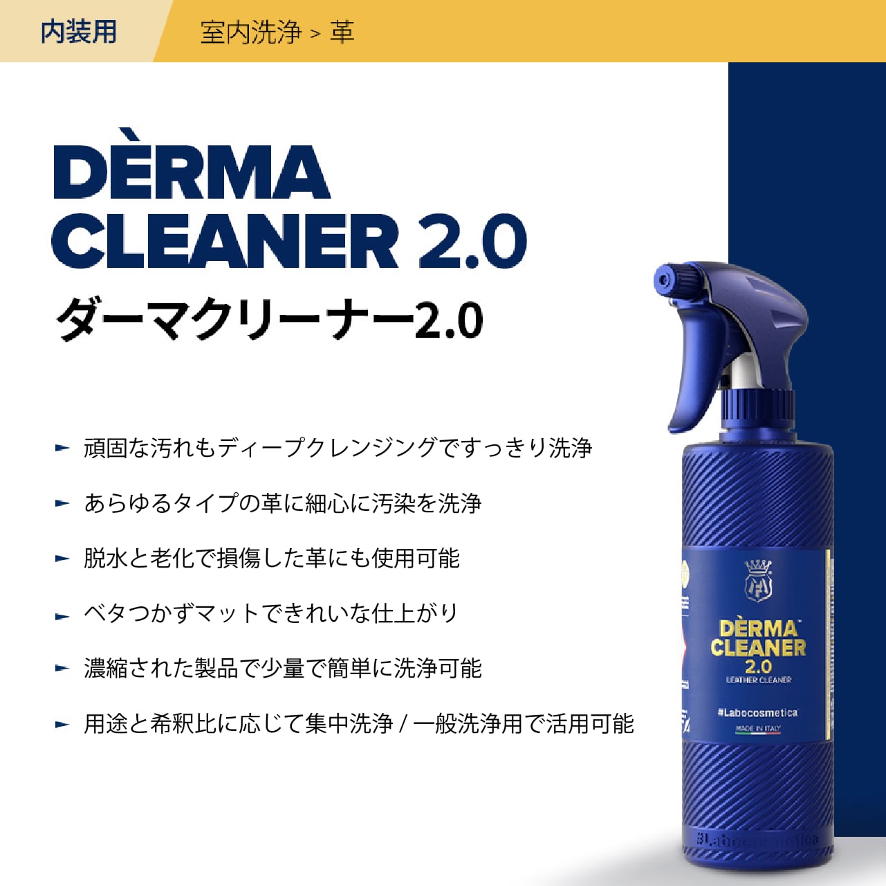 【革シート洗浄】ダーマクリーナー DERMA CLEANER 500ml Labocosmetica