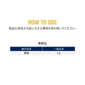 用途と希釈比に応じて集中洗浄/一般洗浄用で活用が可能です。