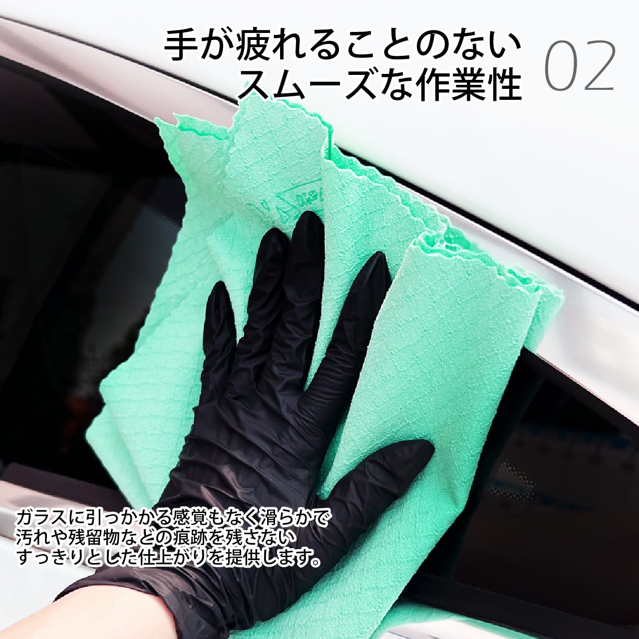 • 超高密度特殊素材が、拭き取り後に跡を残さず、ガラスを滑らかでクリアな状態に。