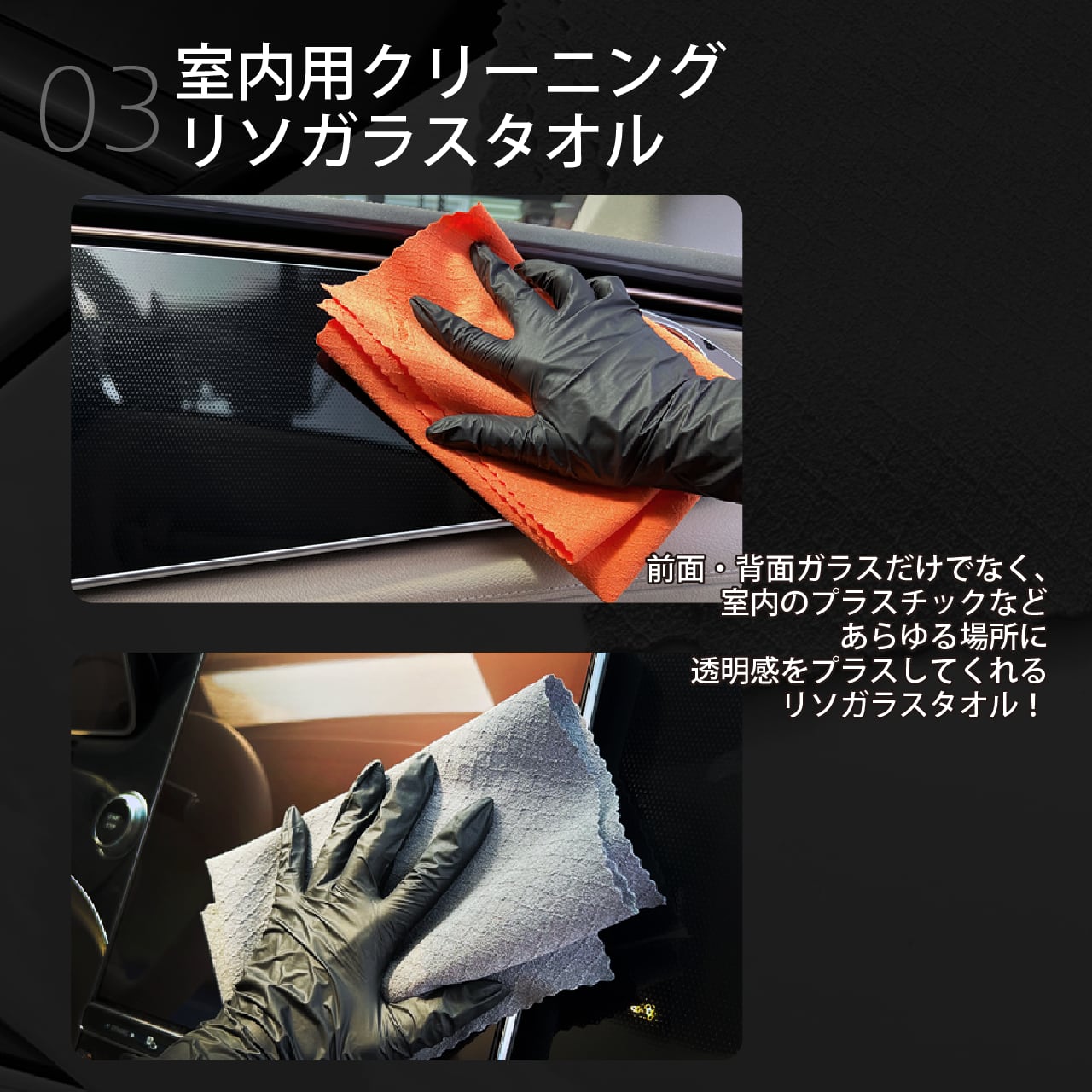 • **仕上げには「ダブルウィン ガラスタオル」**を使用することで、さらなる完璧な仕上がりを実現します。