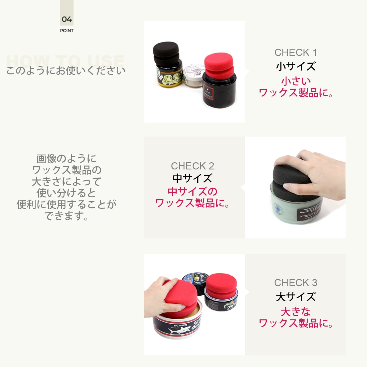 1. アプリケーターに適量のワックスまたはコーティング剤をつけます。